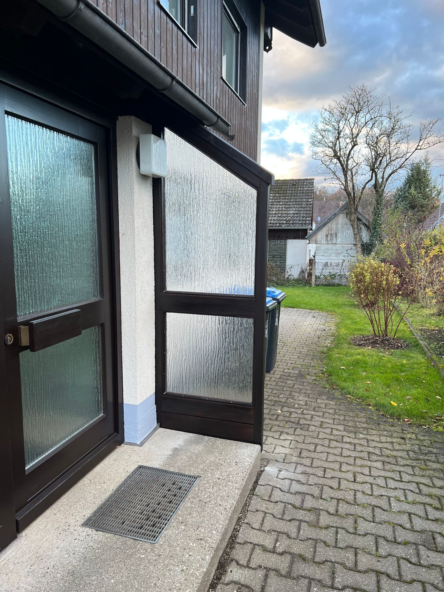 Der Windschutz der Haustüre ist in die Jahre gekommen und war teilweise verfault. Vor allem an den Befestigungspunkten war die Fäulnis so weit fortgeschritten das der Windschutz den Belastungen durch kommende Witterungsereignisse nicht mehr standgehalten hätte. Teilweise waren die Schrauben so stark verrostet das diese im Prinzip nicht mehr vorhanden waren.